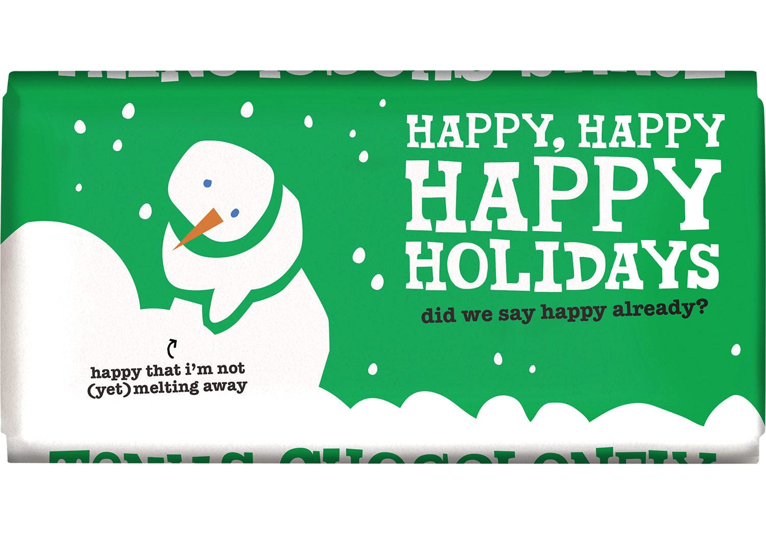 Een gepersonaliseerde chocoladereep past bij elk lijstje, van Secret Santa tot teamcadeau. Verras je collega’s met bijpassende wikkels of stuur bedankt chocolade naar je klanten. Bekijk ook onze volledige kerstcadeaucollectie en ontdek alle kerstchocolade van Tony’s.