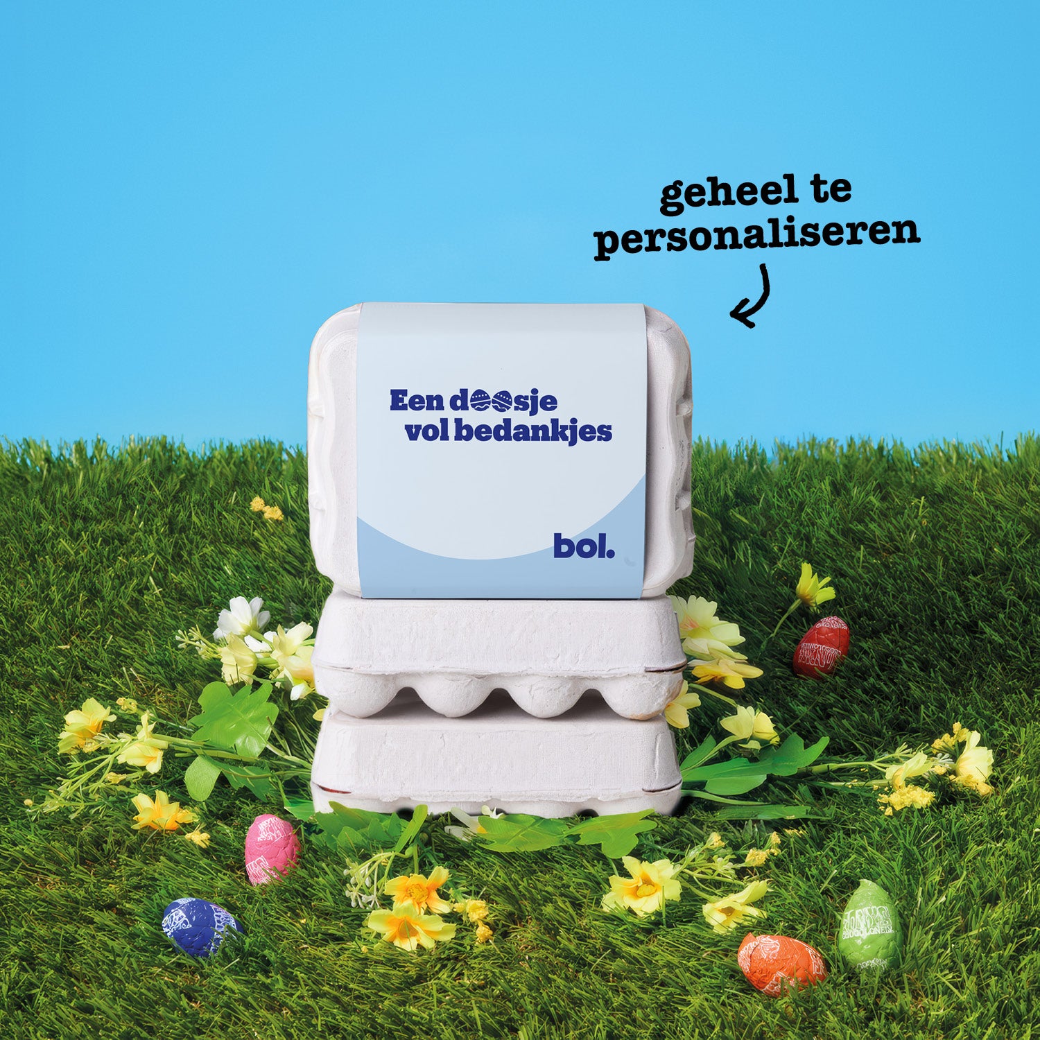 An egg carton full of Easter eggs, but in your own style. Choose a chocolate egg carton and personalize the wrapper with your own design, logo, or message.