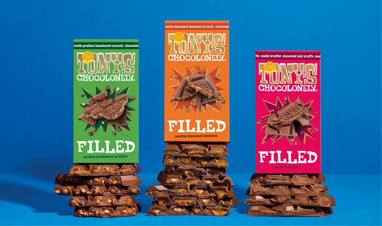 Soft on the inside and chunky as ever, each Filled bar combines our iconic chunky milk chocolate with a multi-textured, layered filling, from gooey, crunchy salted caramel to creamy, crunchy hazelnut and creamy, smooth ganache.