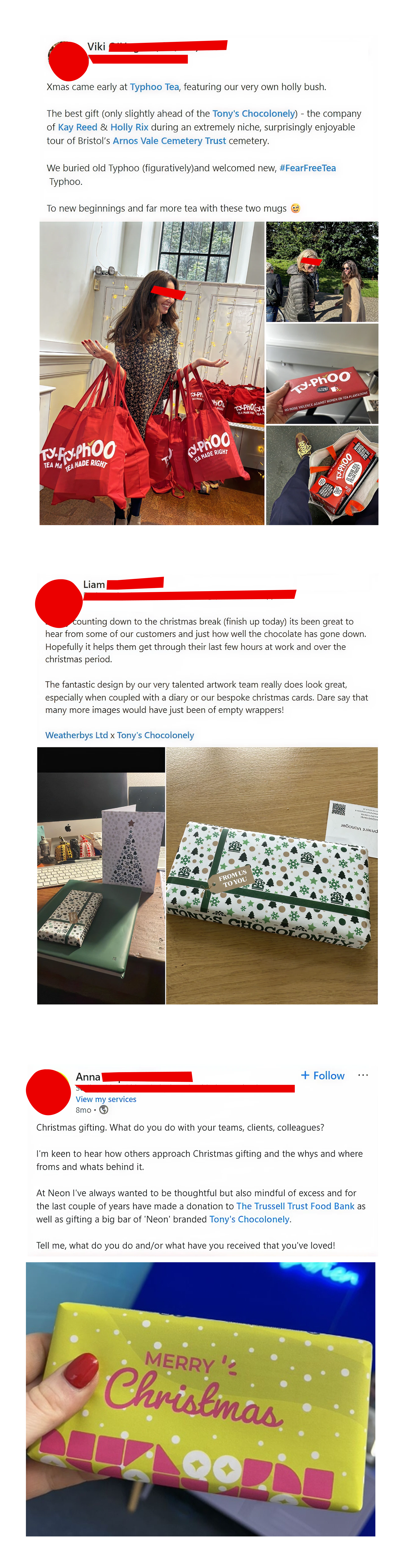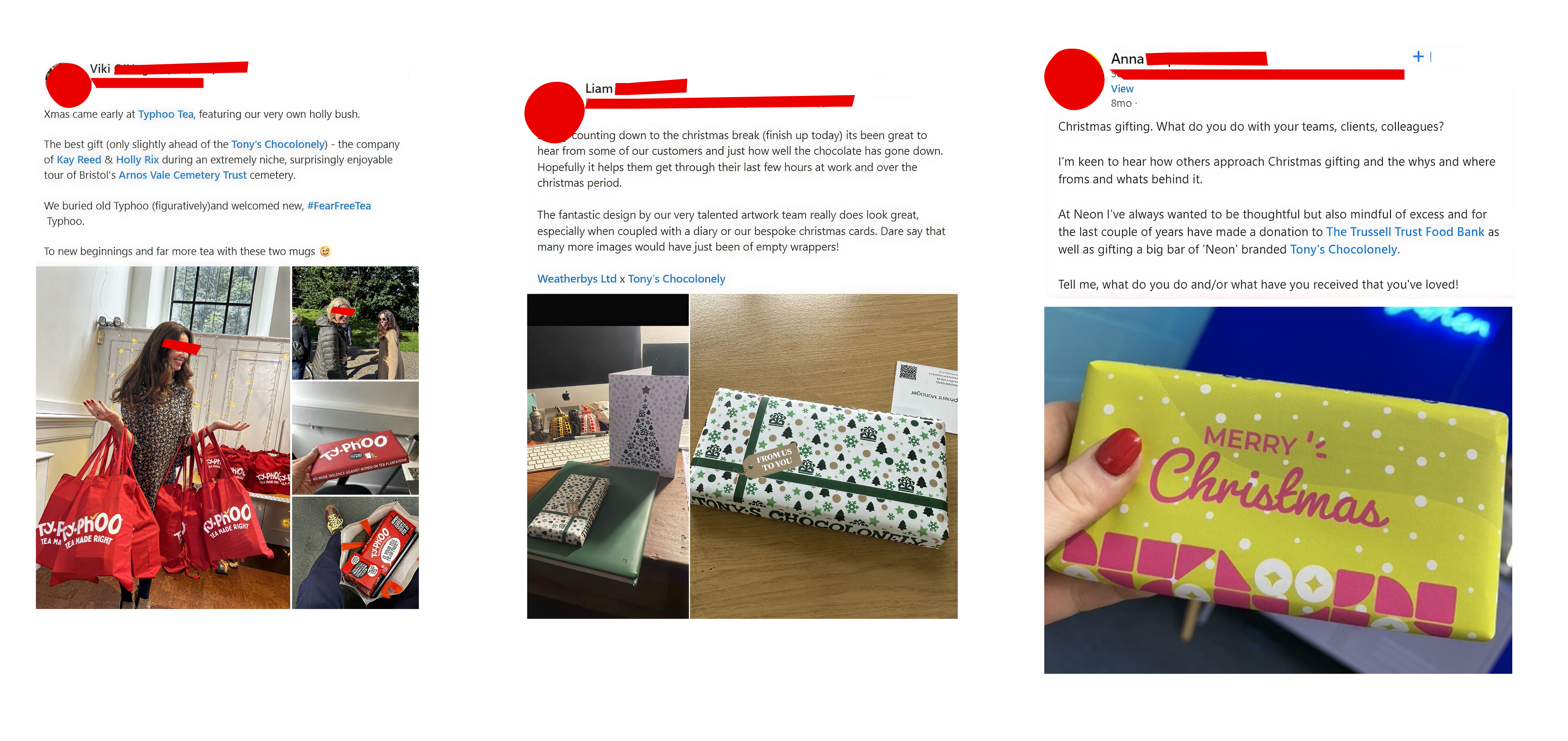 Of course we’d tell you our fully custom, corporate holiday gifts will go down a treat with all your clients, customers and team (duh).. But lucky for us, others do too! And why take our word for it, when you can take theirs?