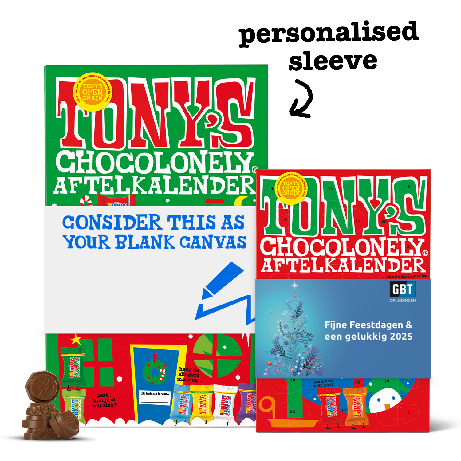 Big Christmas campaign coming up? We'll take care of it. With Tony's Christmas collection, you can make your corporate Christmas gifts just that little bit more special. Choose from colorful gift boxes, festive chocolate bars, or our popular Advent calendar – all made from 100% traceable cocoa. From original flavors like caramel sea salt and dark chocolate to surprising Christmas specials with peppermint or popping candy. Perfect as a sustainable Christmas gift for employees or as a corporate events. We make it easy: fast delivery, support for corporate orders, and always fair-trade chocolate.